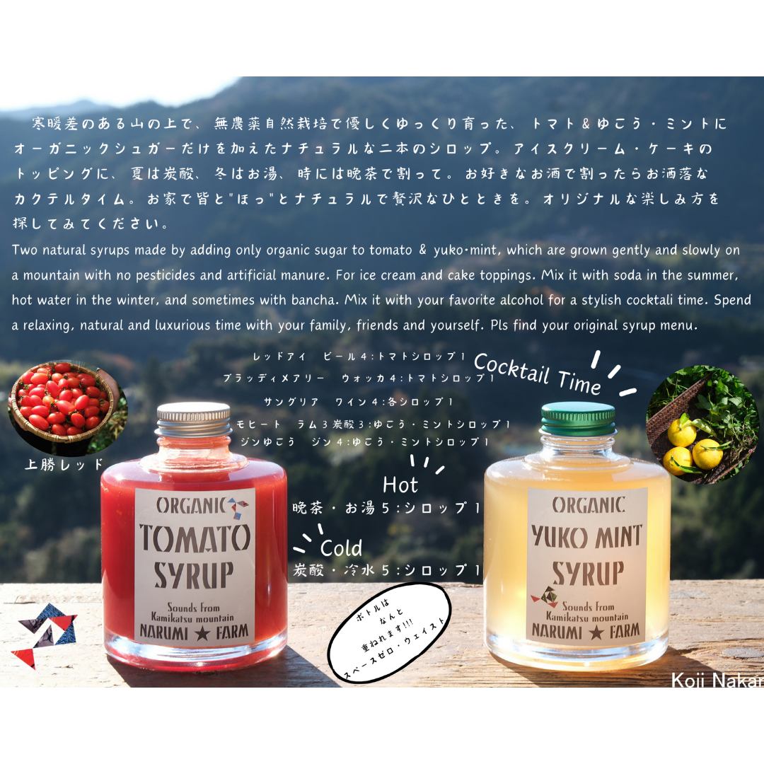 自然栽培のトマトに有機柚香と有機砂糖を加えてシロップにしました。ジンやビールで割ってカクテルに。アイスクリーム、ヨーグルトのトッピングに。冬はお湯や晩茶で割ってホットドリンクに。夏は冷水、炭酸で割って爽やかに。ご家族皆でオーガニックのひと時を楽しんでいただけます。プレゼントにいかがですか?